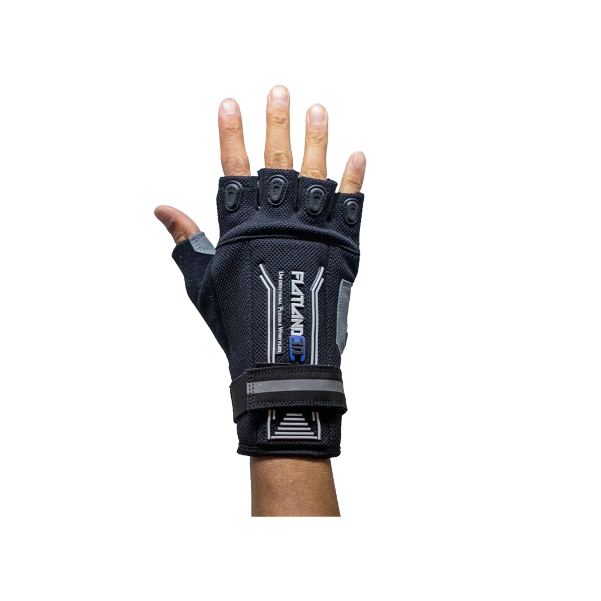 NOTICE REGARDING SAFETY EQUIPMENT: The flatland3d e-skate glove has been designed and tested to reduce the risk of a specific type of injury sustained during typical skateboarding falls. They are not to be used for any other purposes including, but not limited to: performing highly dangerous stunts, subjecting them to extreme impact, or using them for any commercial applications whatsoever. While every effort has been made to ensure that our products meet your reasonable satisfaction, we cannot guarantee that our products will protect you in all circumstances.